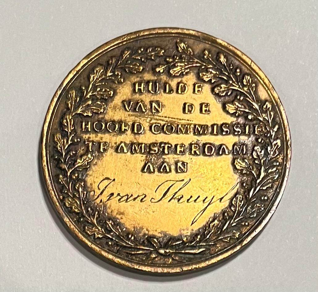 Afbeelding van een penning van de Naarden medaille 1814 op naam van J. van Thuijl. J. van Thuijl komt niet voor in het overzicht van ontvangers van de Naarden medaille 1814. In het overzicht van ontvangers is wel een Gerrit van Tuyl te vinden. Gerrit van Tuyl heeft gediend als remplaçant bij het 2e bataljon, 3 compagnie Nationale Garde. Dit zou inhouden dat Gerrit van Tuyl een bronzen exemplaar zou hebben gekregen. Echter, Gerrit van Tuyl is "Voor Naarden overleden wegens bekomen verwonding aan het achterhoofd". Vraagtekens alom v.w.b. deze Naarden medaille 1814 op naam van J. van Thuijl.